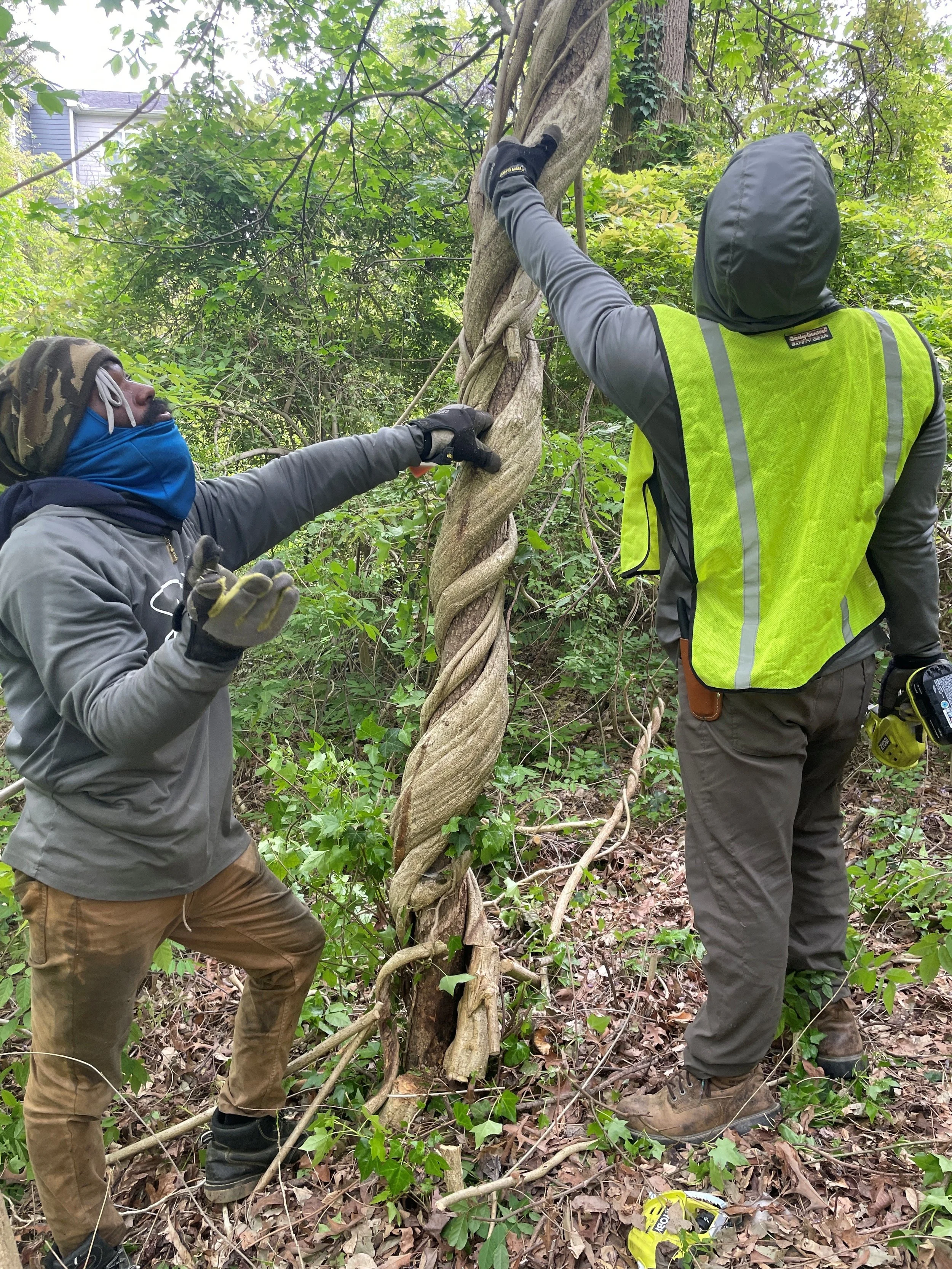 To save as many trees as possible from invasive vines while empowering returning citizens through rewarding employment, thereby preserving nature and culture for future generations.